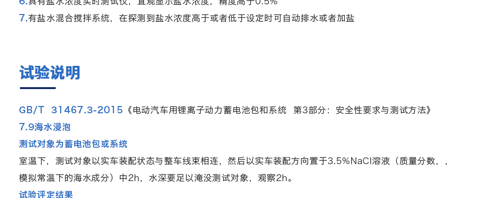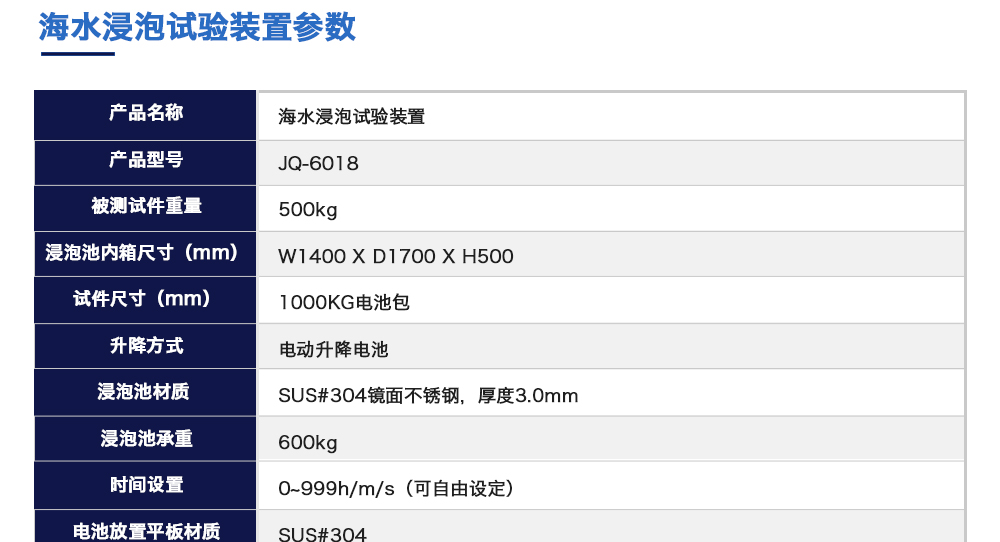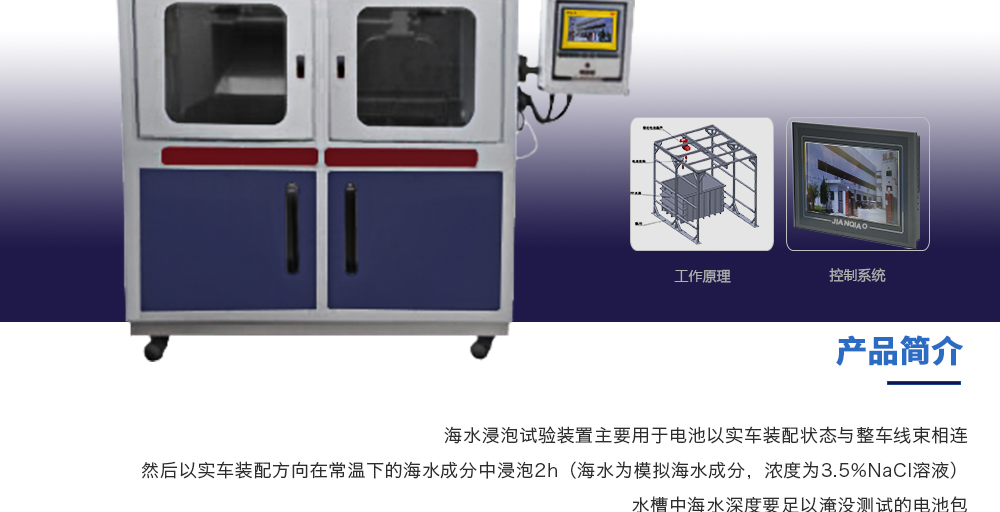 產(chǎn)品型號(hào):JQ-6018 品牌:劍 喬 用途:海水浸泡試驗(yàn)裝置主要用于電池以實(shí)車(chē)裝配狀態(tài)與整車(chē)線束相連然后以實(shí)車(chē)裝配方向在常溫下的海水成分中浸泡2h(海水為模擬海水成分,濃度為3.5%NaCl溶液)水槽中海水深度要足以淹咨詢熱線:13829135130
